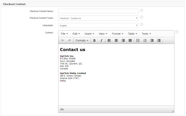 Upclick provides by default a fully functional set of Checkout Contents, meaning that you don't have to start your process from zero.