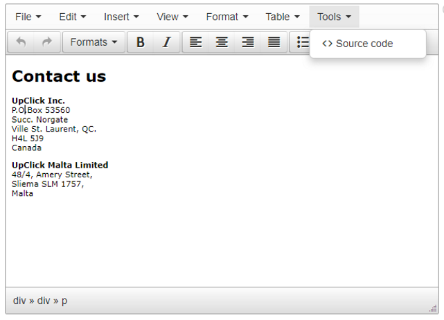 Important: Pay attention to the pre-existing tags, usually displayed between square brackets [], visible in the html mode. They have predefined functionality inside the content and we don't recommend removing them as this will affect the content functionality.