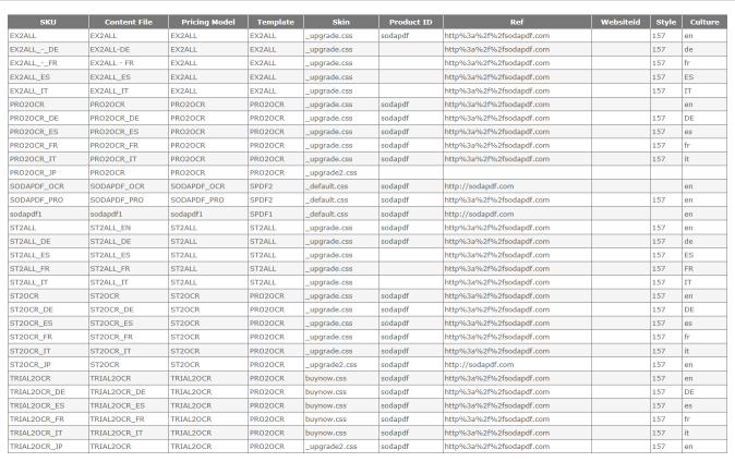 The Carts Report will display all the parameters for every latest entry of cart such as SKU, Content File, Pricing Model, Template, Skin, Product ID, Ref, Websiteid, Style, Culture.