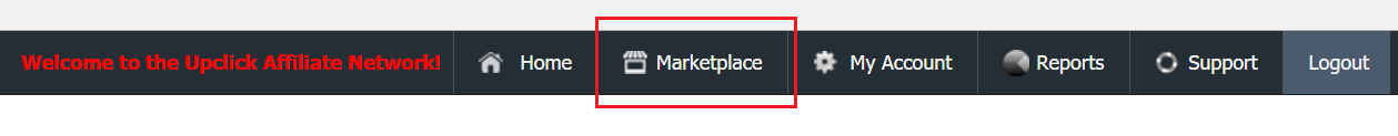 Once you are logged in your affiliate account, click on the “Marketplace” tab on the top right corner.