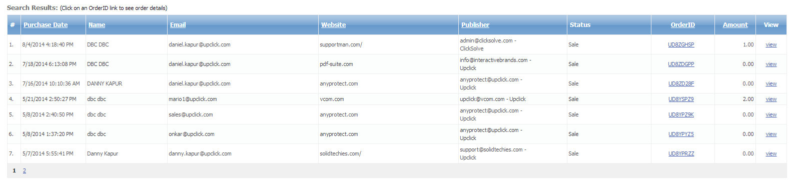 - Order ID: Search by the Order ID. In the "Order ID" text box, the user can search the transaction by entering Upclick Order ID that was sent to the customer when they placed their order. The complete Order ID must be entered. (e.g. "U3DS3PCA") No partial entries are possible for Order ID searches.