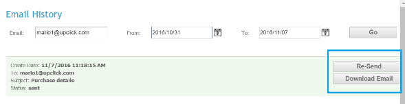 Once it’s done, a user can re-send an email to the customer or download the email by clicking on the appropriate button.